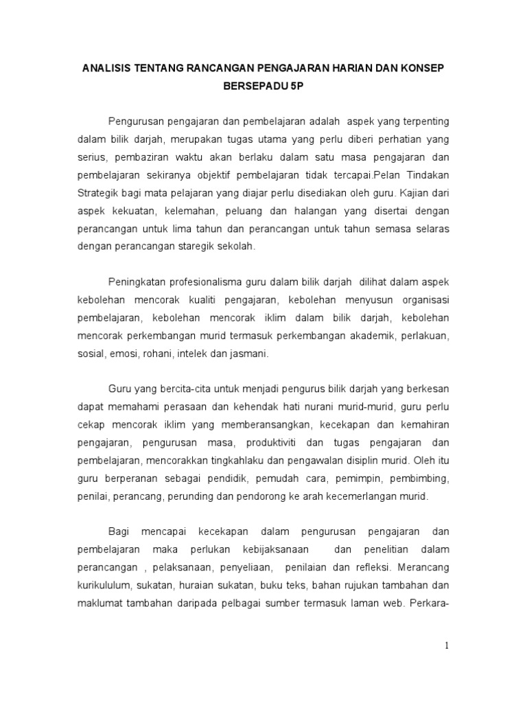 Analisis Tentang Rancangan Pengajaran Harian Dan Konsep Bersepadu 5p Pdf